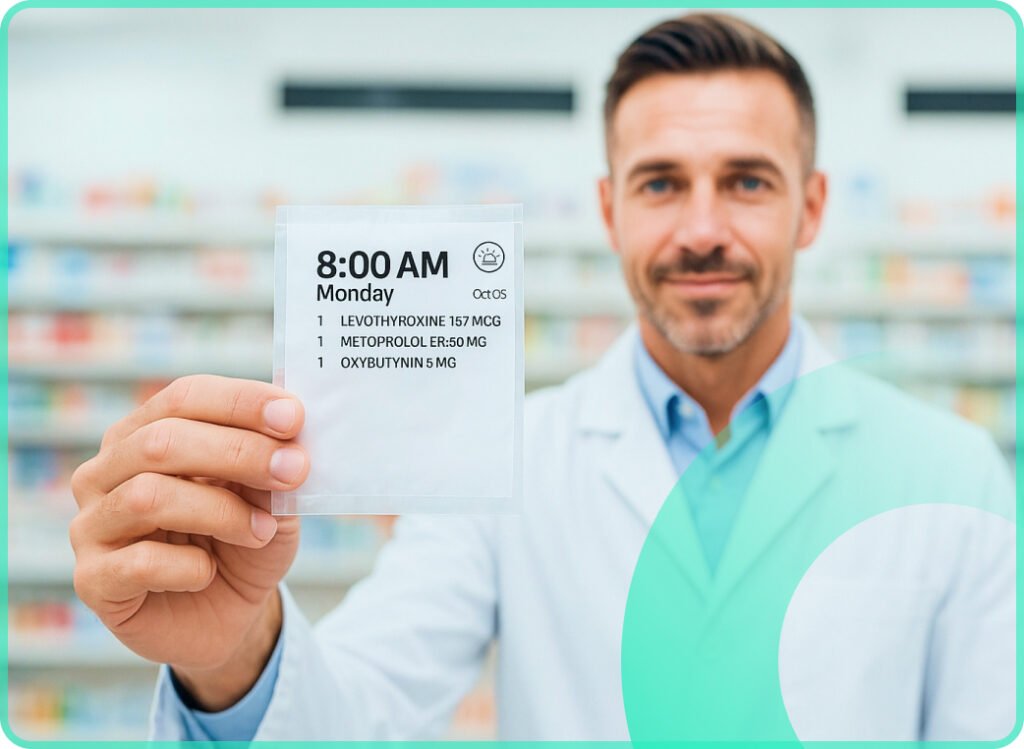 Taking multiple prescriptions every day can be stressful. Missing doses or mixing up pills is common — and risky. We connect you with trusted pharmacy partners who deliver your medications in easy, time-of-day packs — right to your door.